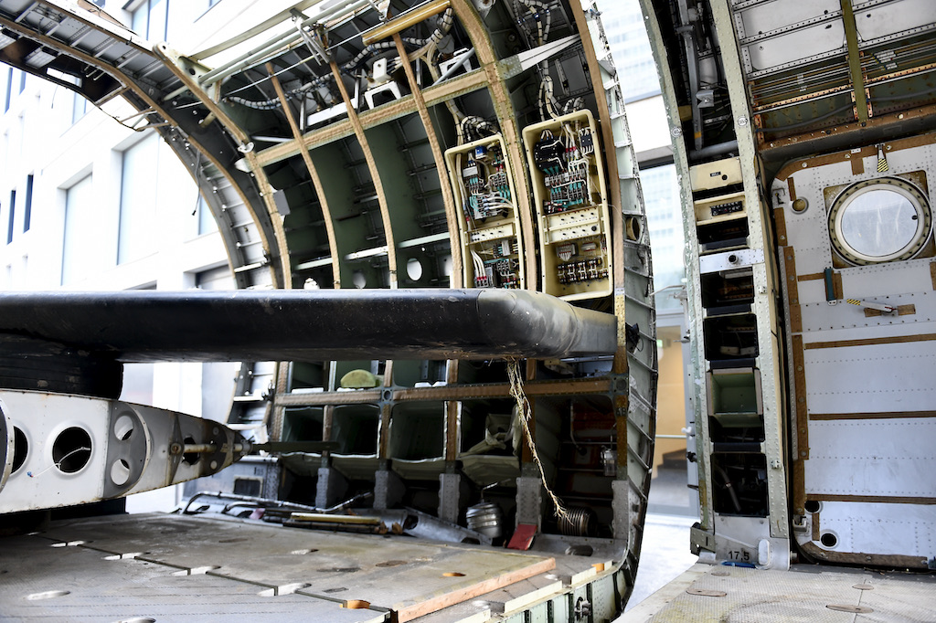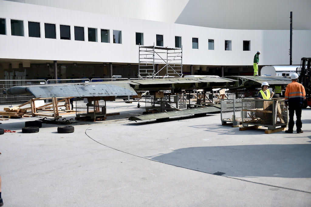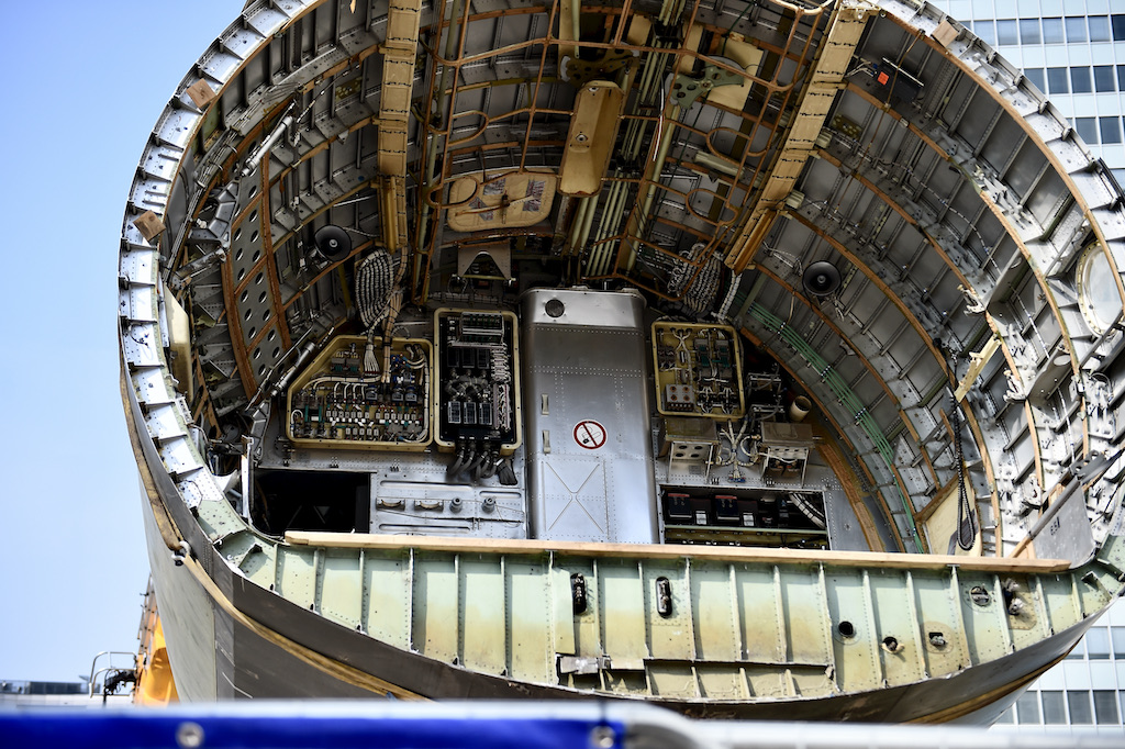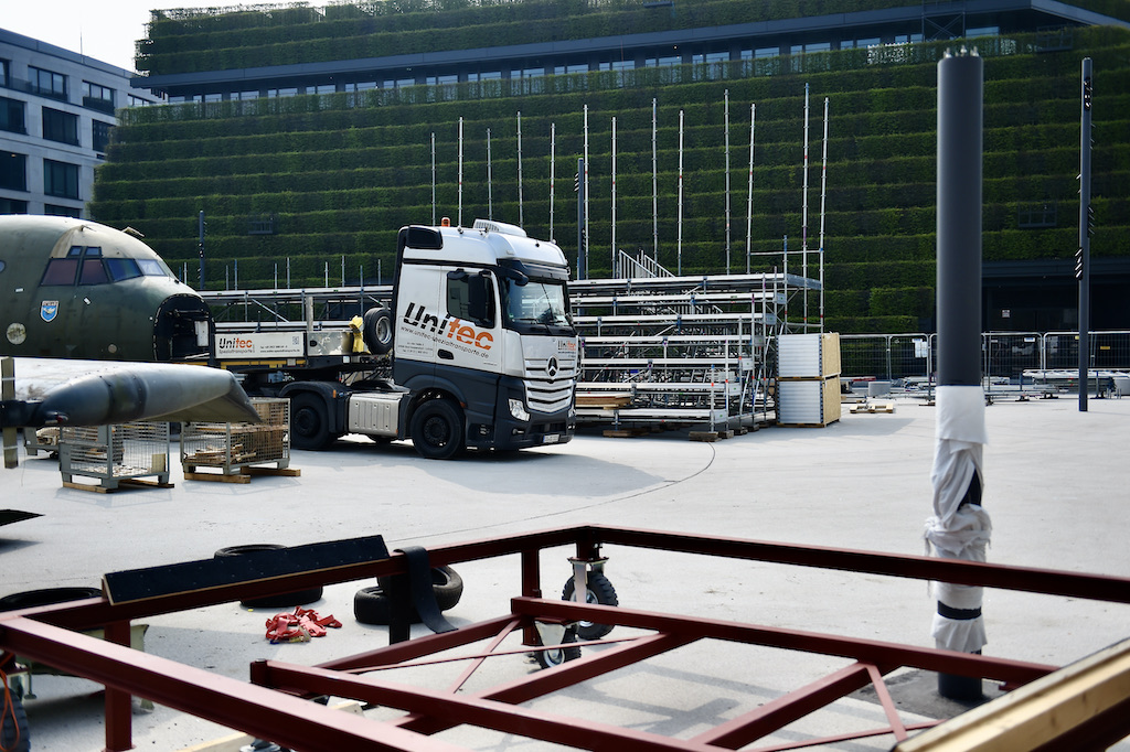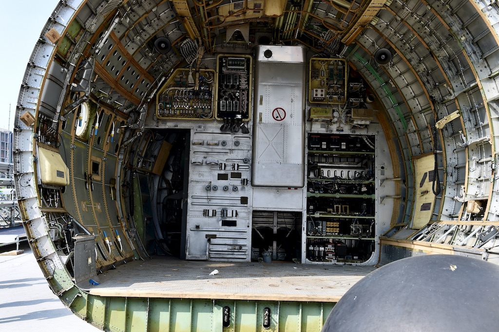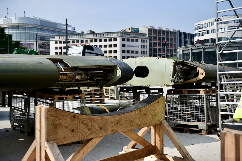 Die Flugzeugteile, darunter ein Heck in Originalgröße, hat sich das Künstlerkollektiv über das Internet bei der Bundeswehr in München besorgt. „40 Jahre lang hat die Transall der Bundeswehr gedient, jetzt wird sie auseinander gesägt und verschrottet“, sagt Benjamin Foerster-Baldenius. „Für mich ist der Flieger der Trabant der Lüfte, vermutlich konnte man ihn mit Schraubenzieher und Hammer reparieren. Das hat eine menschliche Dimension.“ Foerster-Baldenius ist einer von neun Architekten, die hinter Raumlabor stehen und deren zentraler Arbeitsbereich die Kunst ist. „In unseren Augen ist ein Raum nicht allein eine umbaute Zone. Ein Raum entsteht durch soziale Interaktion.“