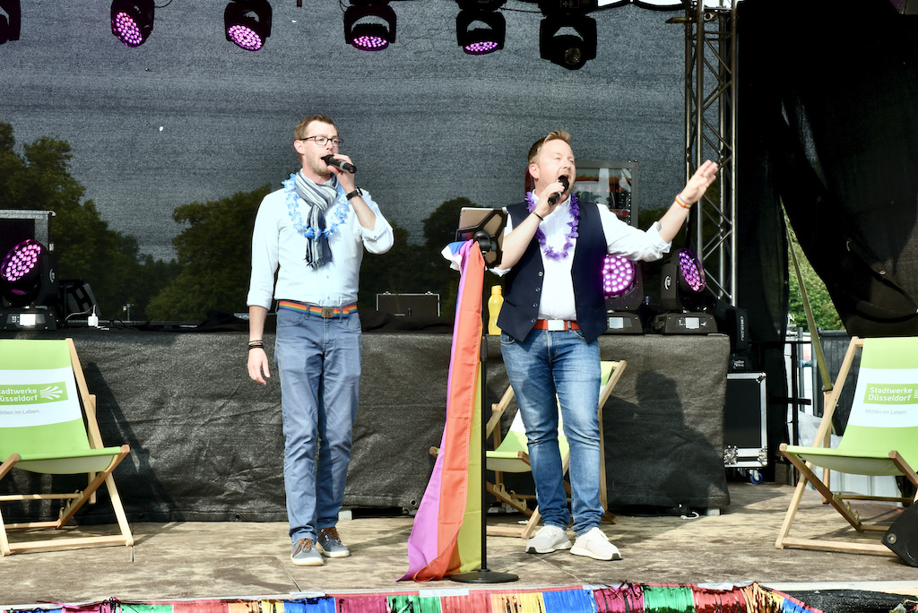 Für einen kurzen Talk kam auch Oberbürgermeister Dr.Stephan Keller vorbei und versprach, dass in der Stadt auch weiterhin die Regenbogen-Fahne immer sichtbar ist. Kalle Wahle und auch OB Stephan Keller gehen davon aus, dass der CSD in diesem Jahr wieder vom 15. bis 17. Oktober stattfinden wird.