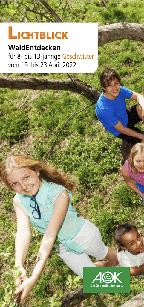 Mit dem Ange­bot LICHTBLICK setzt sich die AOK Rheinland/Hamburg seit für Fami­lien mit schwerst­kran­ken Kin­dern und Jugend­li­chen ein. Auf­grund ihrer engen Ver­bin­dung zur Natur wur­den die LICHT­BLICK-Feri­en­frei­zei­ten als offi­zi­el­les Pro­jekt der UN-Dekade Bio­lo­gi­sche Viel­falt aus­ge­zeich­net. In die­sem Jahr fin­det Wald­Ent­de­cken in Zusam­men­ar­beit mit der Deut­schen Kin­der­krebs­stif­tung bereits zum 17. Mal statt. Das Beson­dere an der Aktion: Da die Feri­en­frei­zeit aus Spen­den finan­ziert wird, kön­nen auch Kin­der teil­neh­men, die nicht bei der AOK Rheinland/Hamburg ver­si­chert sind. Der Eigen­an­teil pro Kind beträgt für die gesam­ten fünf Tage 15.00 Euro. Anmel­de­schluss ist der 10. März 2022. Anmel­dung unter der kos­ten­freien Num­mer 0800 37 37 374.