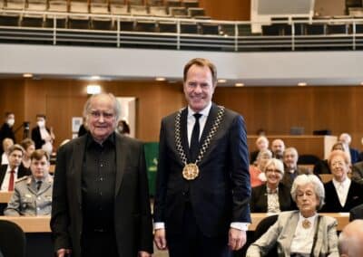 Oberbürgermeister Dr. Stephan Keller: “Sehr geehrter Herr Verhoeven, mit dem Käutner-Preis wird heute Ihr filmisches Lebenswerk gewürdigt. Zugleich wertschätzen wir Ihr gesellschaftliches Engagement und Ihren kritischen Blick, den Sie als politischer Regisseur auf die deutsche Geschichte gerichtet haben. Seit rund fünf Jahrzehnten setzen Sie sich in Ihren Spiel- und Dokumentarfilmen auf ebenso einzigartige wie kritische Weise sowohl mit der Historie als auch mit gesellschaftlichen Entwicklungen auseinander.”