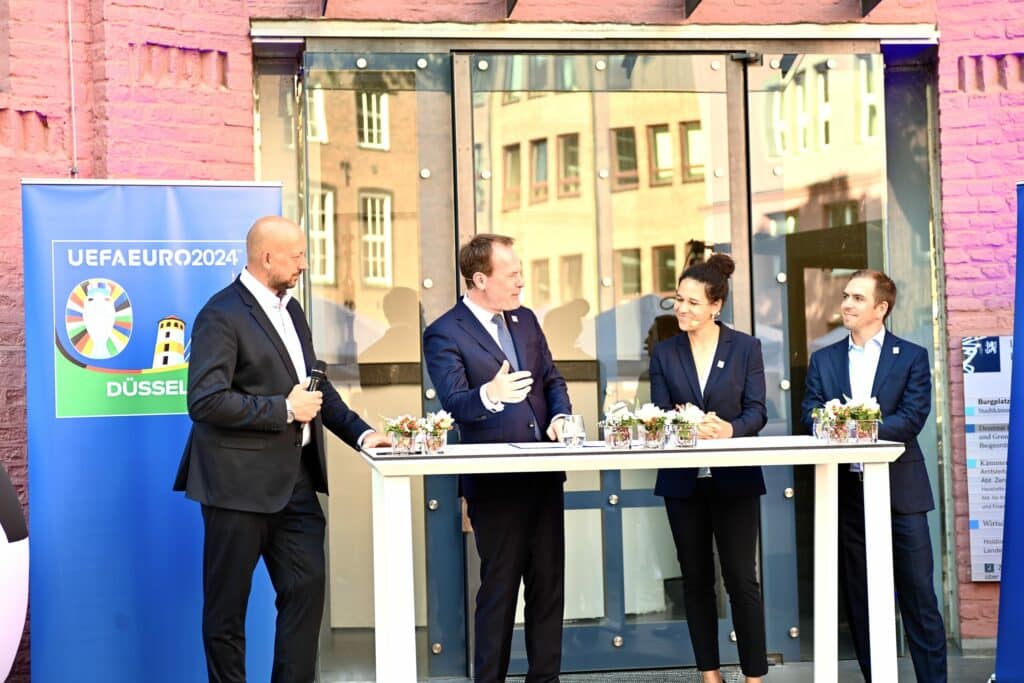 In einer von André Scheidt, dem Stadionsprecher von Fortuna und DEG, moderierten Talkrunde gab der Oberbürgermeister einen Einblick in die Aufgaben einer Ausrichterstadt. Neben der Erstellung von Sicherheits- und Mobilitätskonzepten geht es auch darum, dass möglichst viele Düsseldorferinnen und Düsseldorfer bei der EURO mitwirken – sei es als Volunteer im Stadtgebiet und in der Arena oder beim Einbringen von Ideen zur inhaltlichen Gestaltung der Fan Zonen.
