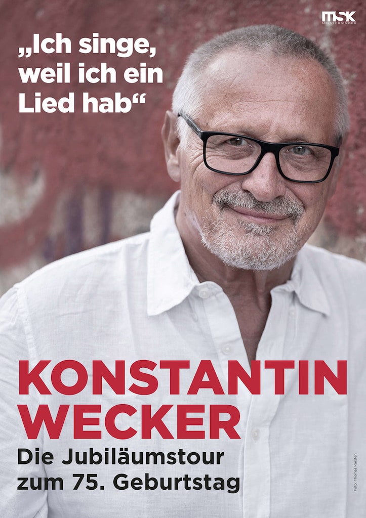 Kon­stan­tin Wecker wird 75 und fei­ert sein stol­zes Alter 2022 gemein­sam mit sei­nem Publi­kum im Rah­men sei­ner Jubi­läums­tour „Ich singe, weil ich ein Lied hab“.