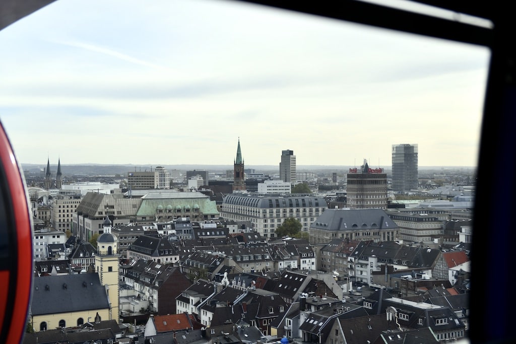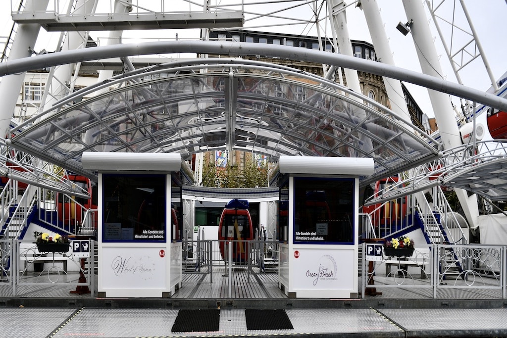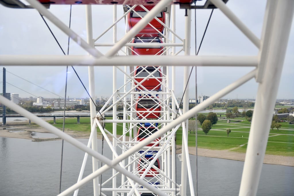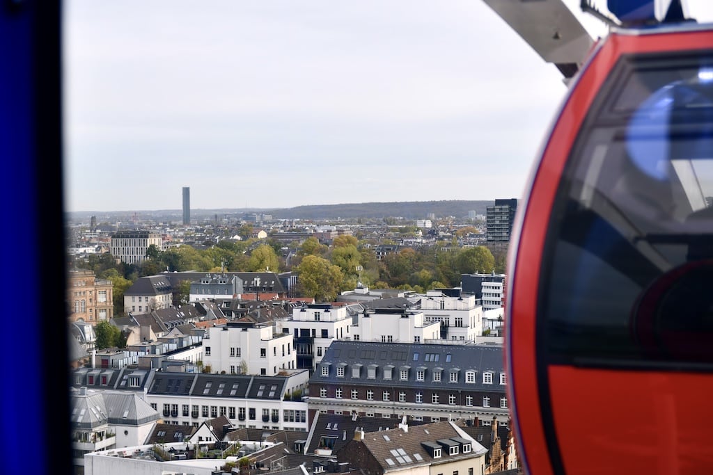 In 55 Meter Höhe nicht nur den Blick über den Rhein, die Altstadt und Oberkassel genießen, sondern dabei auch einen Kaffee trinken oder ein Gläschen Sekt. Im Riesenrad am Burgplatz ist all dies und noch mehr möglich.