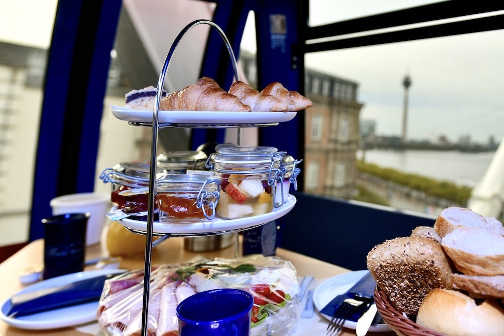 Alle kulinarischen Angebote müssen zwei Tage im Voraus gebucht werden unter https://www.duesseldorf.riesenrad.info/ unter der Beschreibung jeder einzelnen Exklusivfahrt.