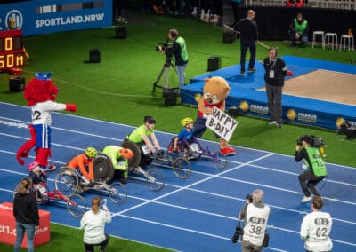 Bevor die Weltklasse-Athleten:innen ihr Können unter Beweis stellen, gehört die Aufmerksamkeit des Publikums im PSD BANK DOME dem Nachwuchs. Im Sprint über 60 Meter treten Sportler:innen der Jahrgänge 2010 und 2011 u.a. vom SFD 75 Düsseldorf, vom ASC Düsseldorf, vom ART Düsseldorf und vom Düsseldorfer TV auf der blauen Wettkampfbahn gegeneinander an. Nicht weniger Beachtung erfahren die Teilnehmer des Wheelchair Race, die schon seit jeher fester Bestandteil des Meetings sind.