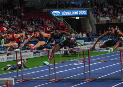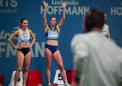 Mit 7,175 Sekunden fehlen Gina Lückenkemper am Ende zwei Tausendstel auf die erstplatzierte Ewa Swoboda im Finale des 60 Meter Sprints der Frauen. Die gebürtige Soesterin sorgt bei ihrem ersten Wettkampf nach ihrem Doppel-Sieg bei der Europameisterschaft in München für großen Beifall im begeisterten Düsseldorfer Publikum. Gina Lückenkemper: „Die Stimmung war der absolute Wahnsinn. Ich habe richtig viel Spaß gehabt und nicht mit solchen Zeiten gerechnet. Aber die Atmosphäre hat mich so aufgeheizt, dass am Ende alles gut geklappt hat.“ Olympiasiegerin Malaika Mihambo sorgt in ihrem letzten Versuch mit 6,83 Meter für klare Verhältnisse und verweist Jazmin Sawyers mit 6,50 Meter auf den zweiten Platz. Im 60 Meter Sprint der Männer hält Gregory Minoue sein Versprechen und zieht als Düsseldorfer in das international top-besetzte Finale ein, in dem er Platz 6 belegt. Gregory Minoue: „Das Publikum war einfach crazy, sowas habe ich noch nie erlebt. Das war einfach wow. Alles in Allem hatte ich mir noch mehr vorgenommen, aber ich habe meine persönliche Bestleistung getoppt und das Finale erreicht – da kann ich mich nicht beschweren.“