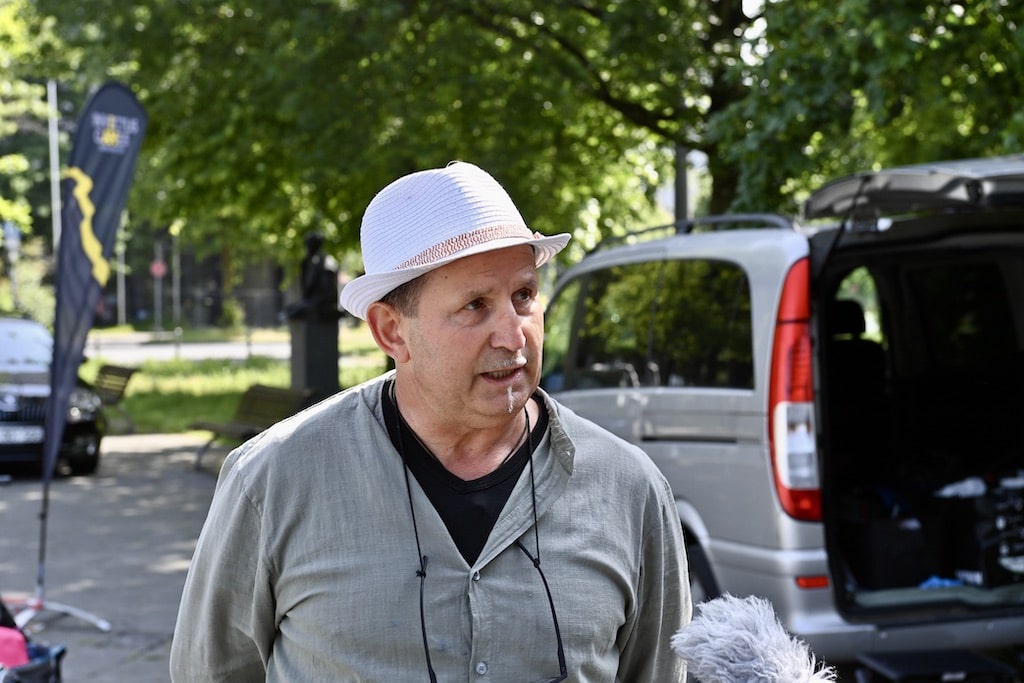 Der Künstler Gregor Wosik bei der Erstellung des Kunstwerkes Foto: LOKALBÜRO