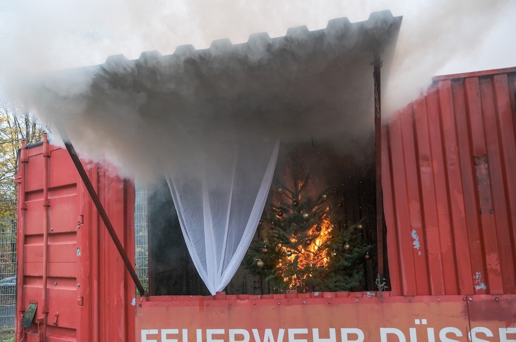 Bereits seit vielen Jahren macht die Feuerwehr Düsseldorf auf die erhöhte Brandgefahr in der wohl schönsten Zeit des Jahres, der Vorweihnachtszeit, aufmerksam. Gerade die Weihnachtsdekorationen wie Adventskränze, Weihnachtsbäume und Tischgesteckte stehen oftmals über Tage und Wochen in wohltemperierten Wohnzimmern und sind richtig ausgetrocknet. Simulierte Brandversuche in einem speziellen Übungscontainer der Feuerwehr Düsseldorf zeigen die Brisanz dieser Brände.