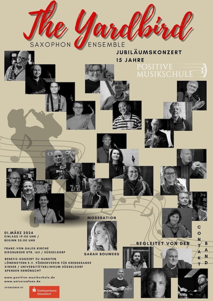 Die “Positive Musikschule” feiert ihr 15-jähriges Bestehen mit einem bemerkenswerten Schülerkonzert, das die Herzen aller Musikliebhaber höherschlagen lassen wird. Unter der Leitung des renommierten Profisaxophonisten Nikolay Kasakov werden 23 talentierte Schülersaxophonistinnen und Schülersaxophonisten zusammen mit sieben angesehenen Profimusikern ein Konzert präsentieren, das den Titel “The Yardbird” trägt.
