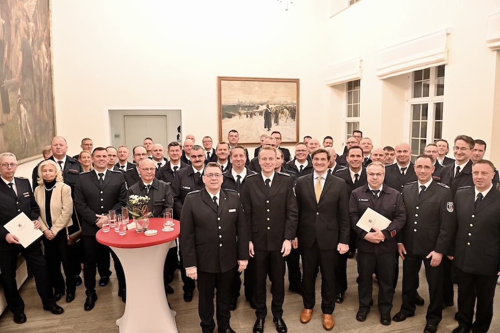 Im Rathaus fand am Freitag, den 23. Februar, eine feierliche Zeremonie statt, um Feuerwehrleute für ihre langjährige Zugehörigkeit zur Feuerwehr zu ehren. Dreizehn Mitglieder wurden mit dem Feuerwehr-Ehrenzeichen in Gold für ihre 35-jährige Dienstzeit ausgezeichnet, während weitere 30 Einsatzkräfte das Ehrenzeichen in Silber für 25 Jahre Mitgliedschaft erhielten. Eine besondere Ehrung wurde den beiden Leitern der Werkfeuerwehr Henkel zuteil, die mit der Ehrennadel des Stadtfeuerwehrverbandes ausgezeichnet wurden. Die Auszeichnungen wurden im Jan-Wellem-Saal des Rathauses von Feuerwehrdezernent Christian Zaum und Feuerwehrchef David von der Lieth überreicht.