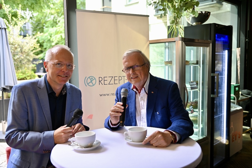 Archivbild Prof. Martin und Heriber Klein beim Kaffee Klatsch im Mutter Ey Cafe Foto: LOKALBÜRO