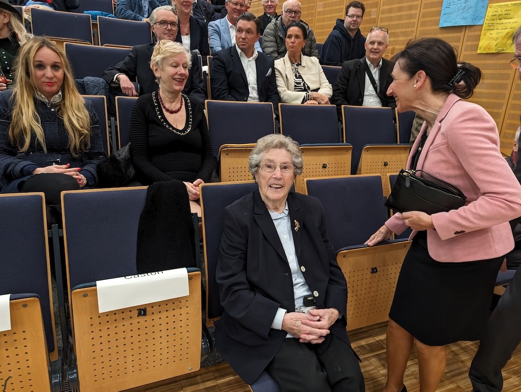 Die Salz­bre­zel der Bäcke­rei Hin­kel mun­de­ten gut. Die hatte Josef Hin­kel, Bür­ger­meis­ter, gespen­det, der auch zu den Gäs­ten zählte. Prall­voll war der Saal mit CDU-Pro­mi­nenz und vie­len ande­ren. Lutz Aen­ge­velt, Olaf Lehne, Mar­tin Schil­ling, Babette de Fries, Andreas-Paul Stie­ber, Andreas Ehlert und Ehe­frau, noch viel mehr waren da. Nicht zu ver­ges­sen Regina Schä­fer, Hei­mat­fo­to­gra­fin, die mit 93 Jah­ren in der ers­ten Reihe saß und für die CDU im Nor­den Fotos machte.