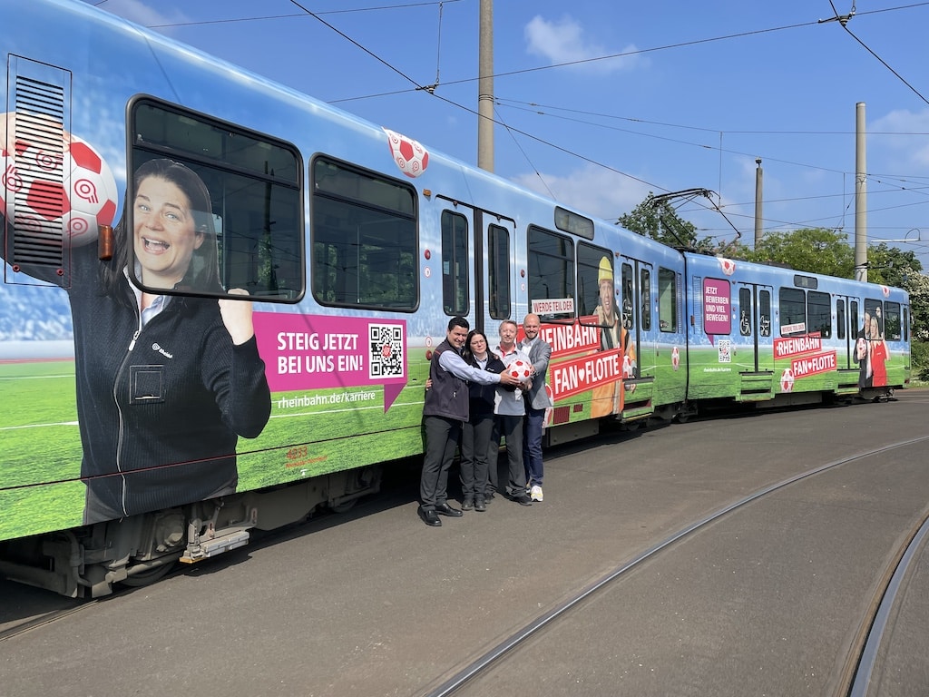 Mit einem Team engagierter Mitarbeiterinnen und Mitarbeiter ist die Rheinbahn bestens vorbereitet, um Fans während der Europameisterschaft zu transportieren. Als Teil dieser Vorbereitungen schmücken Mitarbeiterinnen und Mitarbeiter stellvertretend für das gesamte Team ab sofort die Bahnen der speziellen Fan-Flotte, die durch Düsseldorf und umliegende Städte fährt.