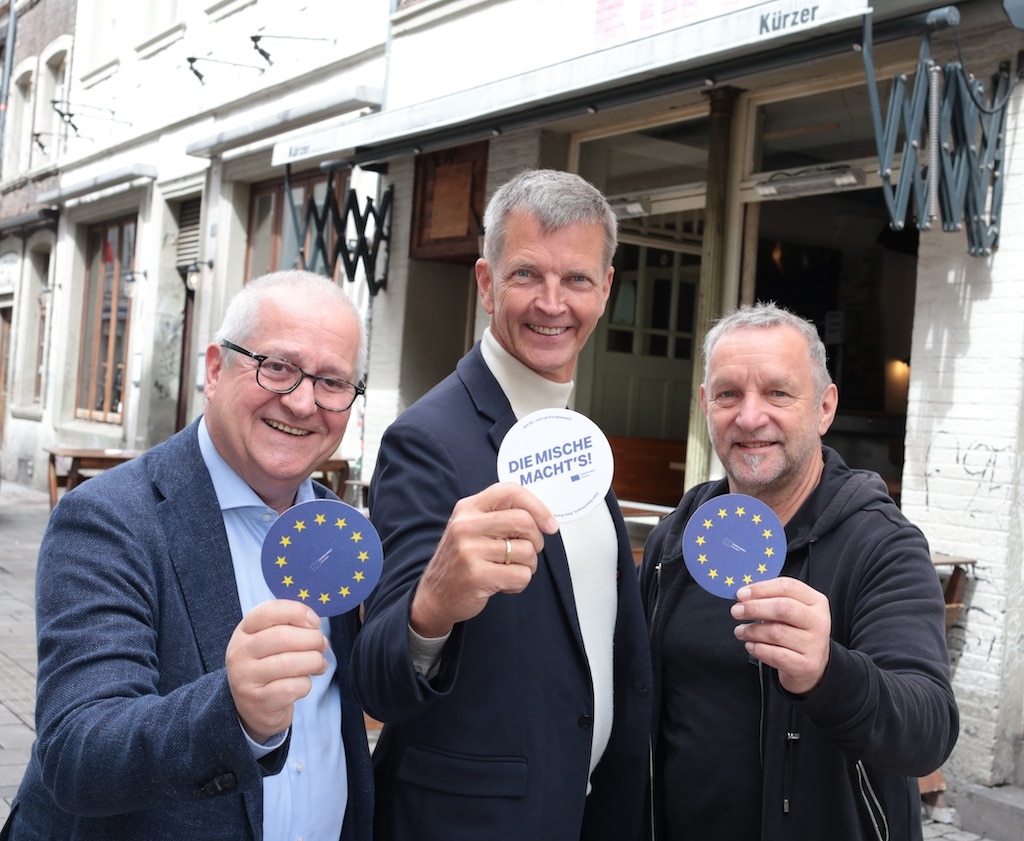 Die Lan­des­haupt­stadt Düs­sel­dorf hat im Vor­feld der Euro­pa­wahl Bier­de­ckel bedru­cken las­sen. Mit dem Spruch “Die Mische macht’s” soll nicht nur auf die Rezep­tur des Getränks, son­dern viel­mehr auf die Kern­werte der Euro­päi­schen Union – Viel­falt, Demo­kra­tie, Mei­nungs­frei­heit – ange­spielt wer­den. Die Bier­de­ckel wer­den Gas­tro­no­men kos­ten­frei zur Nut­zung zur Ver­fü­gung gestellt. Die Aktion zielt dar­auf ab, für die Euro­pa­wahl am Sonn­tag, 9. Juni, zu mobi­li­sie­ren. Gemein­sam mit Bür­ger­meis­ter Josef Hin­kel haben Gui­seppe Saitta, Kreis­vor­sit­zen­der Dehoga Düs­sel­dorf, Patrick Wals­dorf, Betriebs­lei­ter der Braue­rei Kür­zer, sowie Hans-Peter Schwe­min, Inha­ber der Braue­rei Kür­zer, die Europa-Bier­de­ckel am Mitt­woch, 29. Mai, präsentiert.