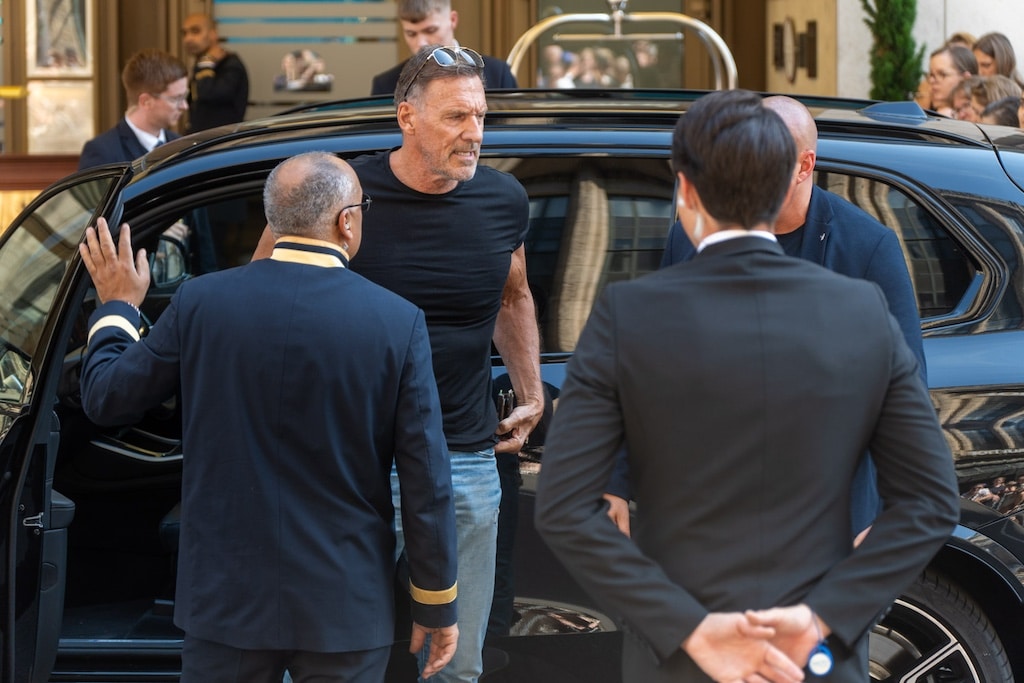 Fans haben sich vor dem Brei­den­ba­cher Hof ver­sam­melt und war­ten dar­auf, einen Blick auf Cold­play zu erha­schen. Die bri­ti­sche Band Cold­play gibt im Rah­men ihrer „Music of the Sphe­res World Tour“ gleich drei Kon­zerte in der Düs­sel­dor­fer Arena: am Sams­tag (20. Juli), Sonn­tag (21. Juli) und am Diens­tag (23. Juli). Alle Shows sind aus­ver­kauft. Wäh­rend sie auf die Stars war­te­ten, kam plötz­lich der deut­sche Schau­spie­ler Ralf Moel­ler vor­ge­fah­ren, um einzuchecken.