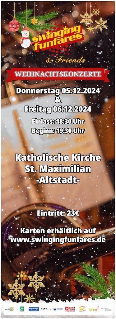 Die vorweihnachtlichen Konzerte der Swinging Funfares in der Maxkirche St. Maximilian in der Düsseldorfer Carlstadt sind seit vielen Jahren ein fester Bestandteil der Adventszeit und zählen zu den musikalischen Höhepunkten der Saison. In diesem Jahr dürfen sich Besucher auf gleich zwei Termine freuen: Am Donnerstag, den 5. Dezember, und am Freitag, den 6. Dezember, laden die Swinging Funfares jeweils um 19:30 Uhr (Einlass: 18:30 Uhr) zu einem stimmungsvollen Konzertabend ein.