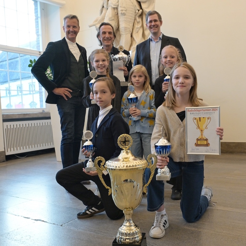Gewinnerinnen und Gewinner des Gerresheimer Radschlägerturniers im Rathaus