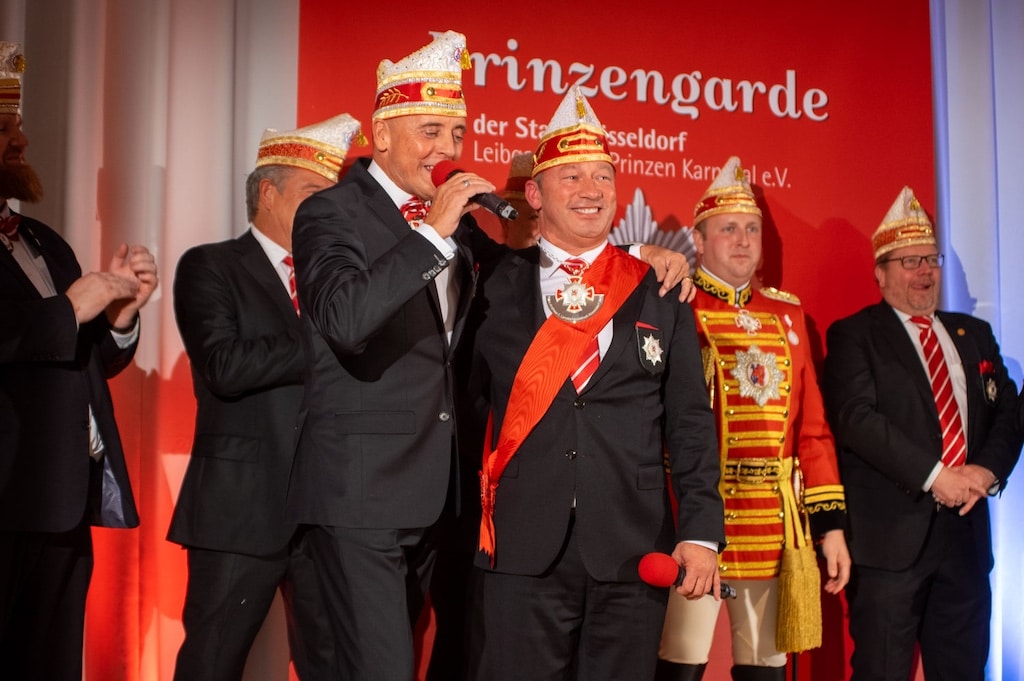 Eine besondere Überraschung hatte Janine Kemmer, Vizepräsidentin des Comitee Düsseldorfer Carneval (CC), für Edgar Kritzler im Gepäck. In Anerkennung seiner Verdienste für den Karneval wurde ihm der BDK-Orden in Gold verliehen – eine Ehrung, die nur wenigen zuteil wird.