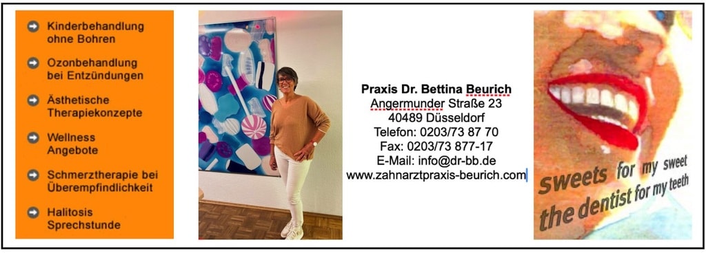 Wie die Zeit verfliegt! Als Dr. Bettina Beurich vor 20 Jahren ihre Praxis in Angermund eröffnete, dachten viele zunächst, dort habe eine neue Inneneinrichterin ihr Geschäft eröffnet. Denn in den Fenstern leuchteten orangefarbene Bilder und hübsche Dekorationen. Sie liebt Pop-Art-Kunst von Ulrik-Happy Dannenberg, einem erfolgreichen Künstler aus Bremen.