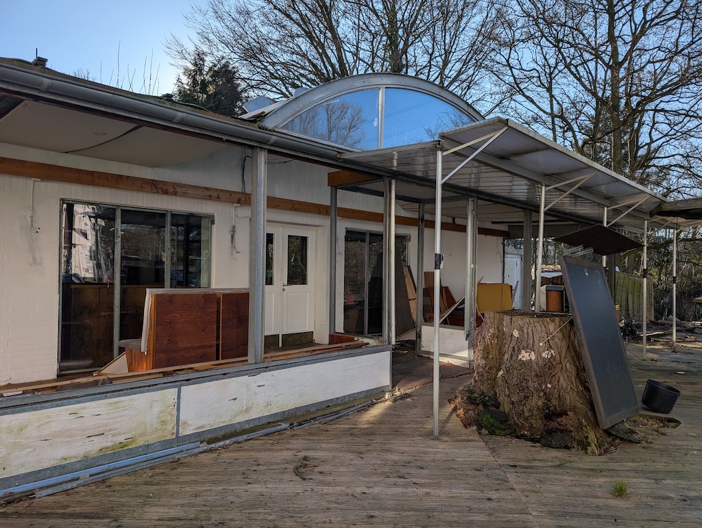 Auf den ersten Blick sieht es so aus, als ob das Café schon monatelang geschlossen hätte. Das Holz ist faulig, die Möbel stehen unaufgeräumt herum, öde und leer ist der Platz.