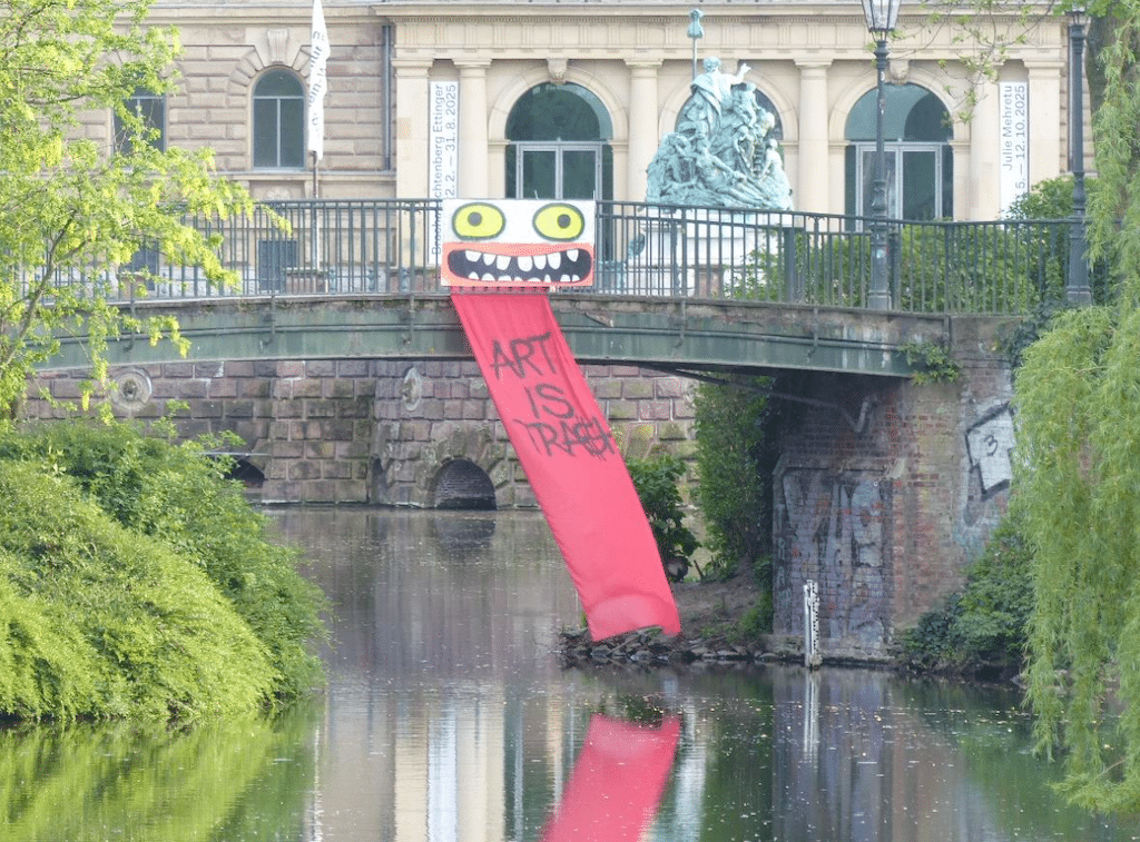 Die Kunst von „Art is Trash“ lebt vom Kontrast. Auf der einen Seite stehen fein komponierte Leinwände voller emotionaler Tiefe und kraftvoller Bildsprache, auf der anderen seine improvisierten, oft flüchtigen Straßenarbeiten, die mit Witz, Ironie und Kritik an gesellschaftlichen Normen auf sich aufmerksam machen. Typisch für beide Werkformen: seine markante Bildsprache mit Comic-Elementen und der provokante Slogan „ART IS TRASH“ – ein bewusst widersprüchliches Statement, das angesichts seines internationalen Erfolgs zum Nachdenken anregt.