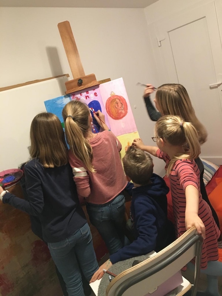 Eine Malschule für Kinder hat sie auch. Hier hat kreative Entspannung Raum – denn die Kinder können sich frei entfalten. Ein Einstieg ist jederzeit möglich, Vorkenntnisse sind nicht nötig.
