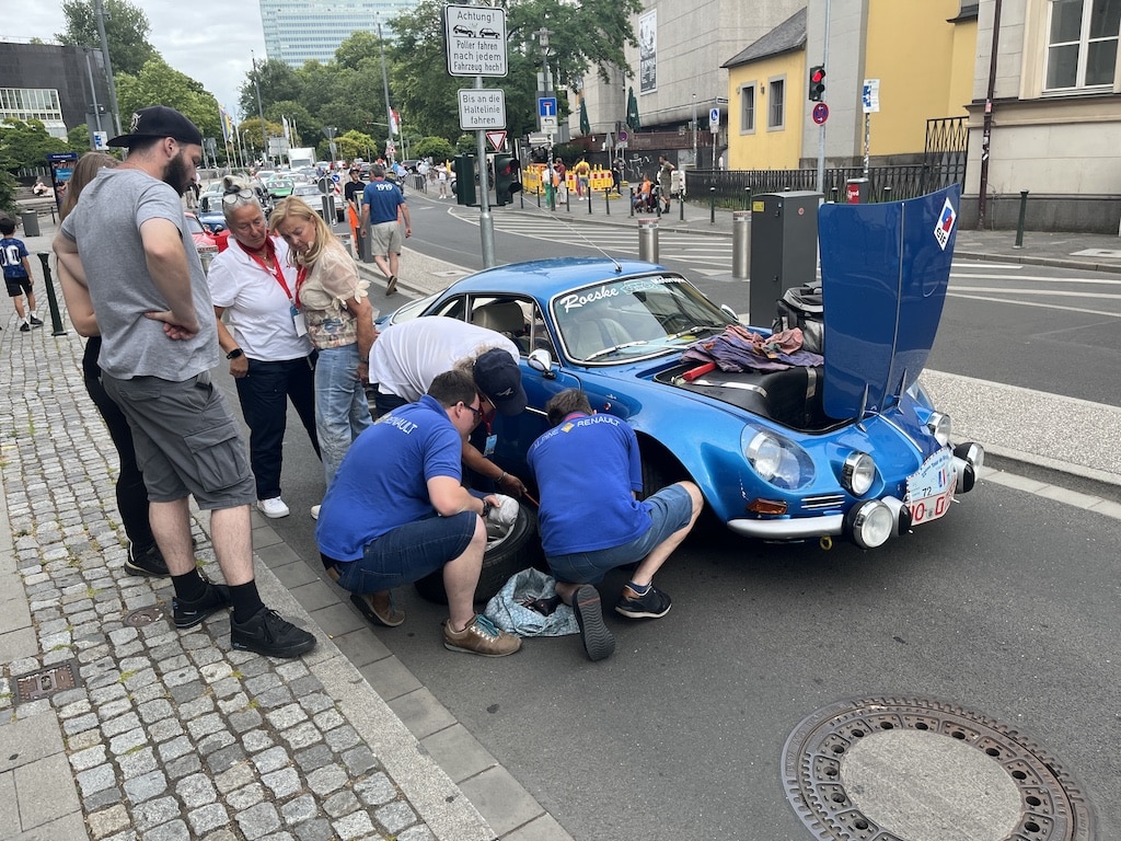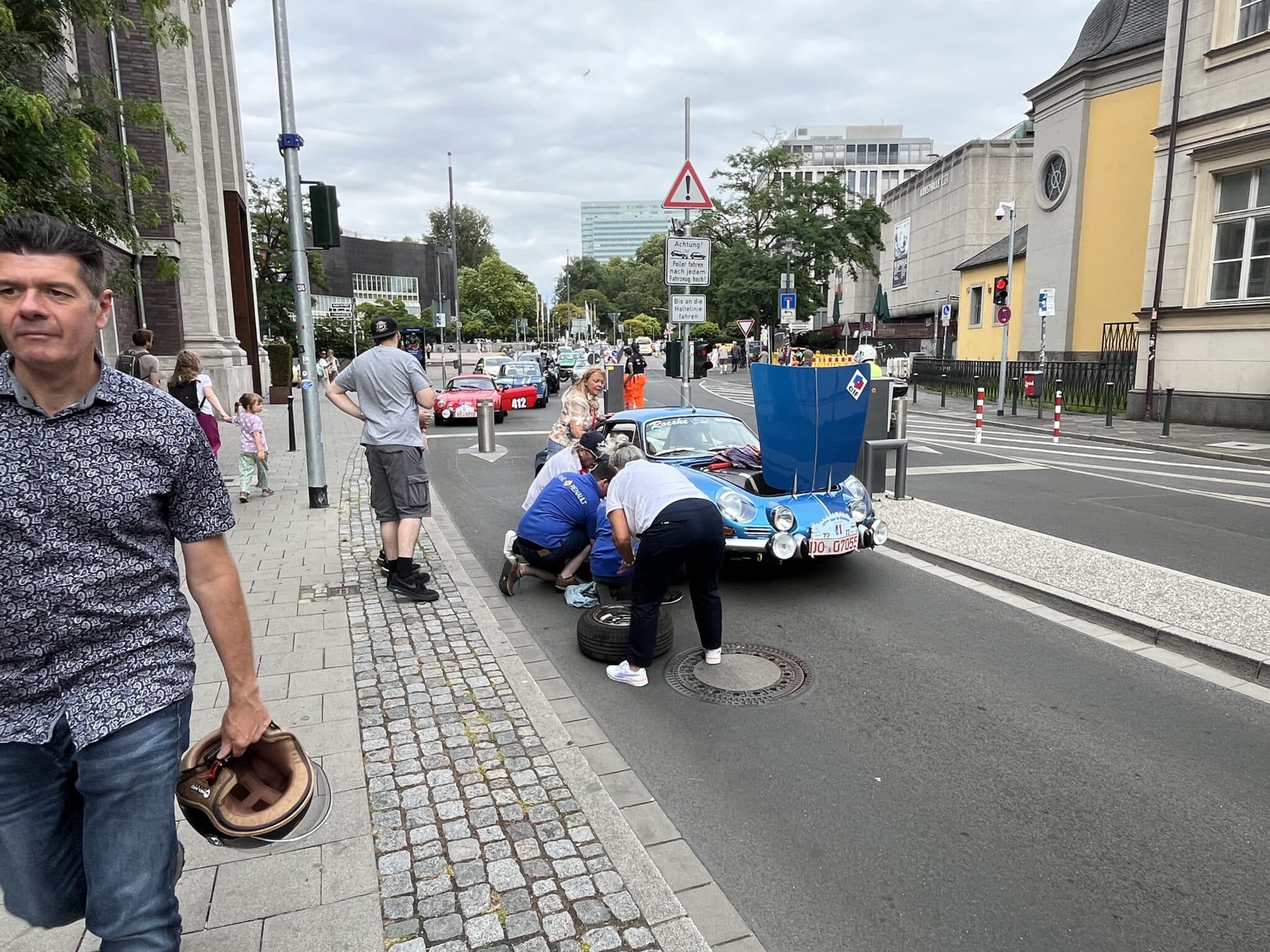Eigentlich war Thomas Roeske auf dem Weg zum Finale der Tour de Düsseldorf auf den Burgplatz. Doch das Ziel der Oldtimer-Ausfahrt zum Frankreichfest erreichte der Dortmunder nicht. Stattdessen ist sein Renault Alpine nun auf dem Weg in die Werkstatt. Die Hubpolleranlage an der Mühlenstraße zerstörte seinen über 100.000 Euro teuren Wagen.