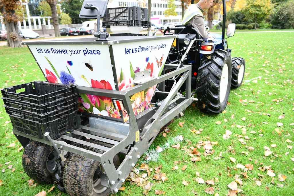 Hier wer­den die Blu­men­zwie­beln in den Rasen gepflanzt © Lokalbüro