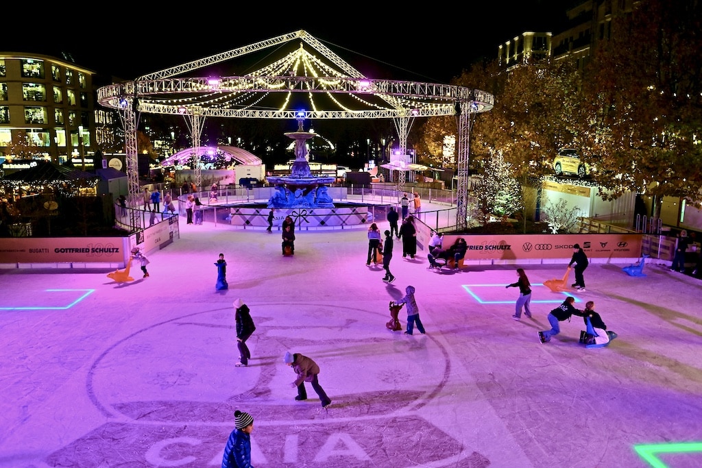 Bis zum 11. Januar 2026 lädt die Eislandschaft zum Eislaufen, Eisstockschießen und Verweilen ein. Besonders beliebt ist das kostenlose Vormittagsangebot für Schulklassen: Rund 7500 Kinder dürfen in diesem Winter kostenfrei aufs Eis – alle Plätze waren binnen zwei Tagen ausgebucht.