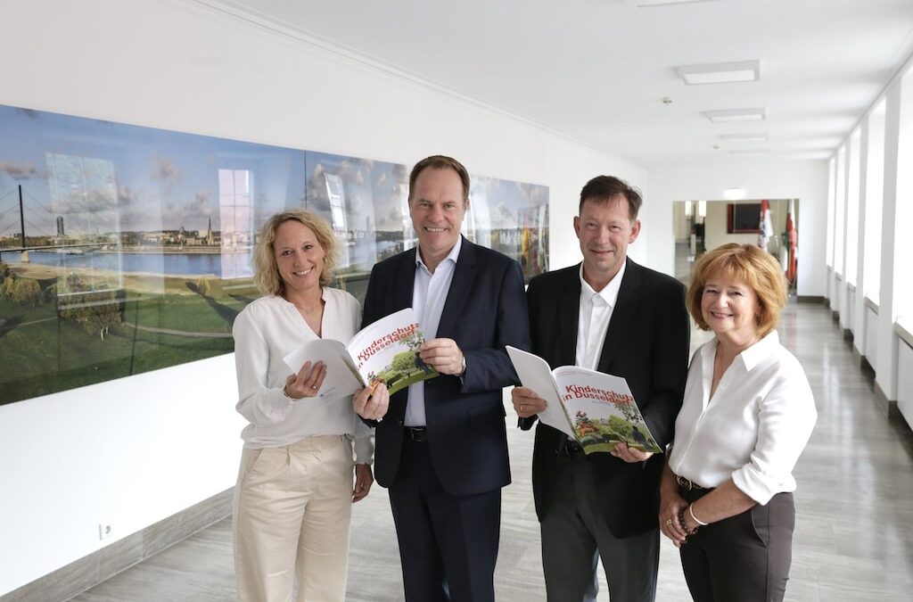 Der Schutz von Kindern und Jugendlichen wird in Düsseldorf konsequent und umfassend angegangen. Oberbürgermeister Dr. Stephan Keller, Stadtdirektor Burkhard Hintzsche und Renate Schäfer-Sikora, stellvertretende Leiterin des Amtes für...